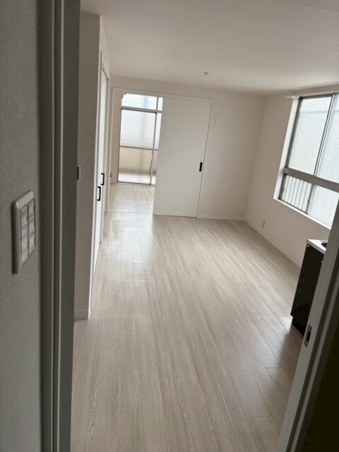 内装を一新し、床材は現代的で明るい木目調のフローリングへ張り替え、開放感と清潔感のある住空間を実現。