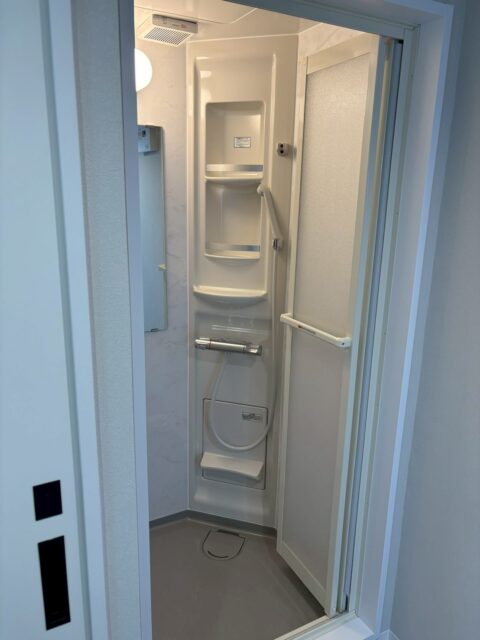 古い風呂釜の浴室も限られたスペースを有効活用できるスタイリッシュなシャワールームへと刷新しました。